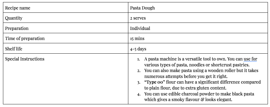 Pasta making is a fine art which takes years to master for any chef working in the industry. Every chef will have their own variations of pasta dough. The key is to knead the dough using the right amount of ingredients & the right technique.